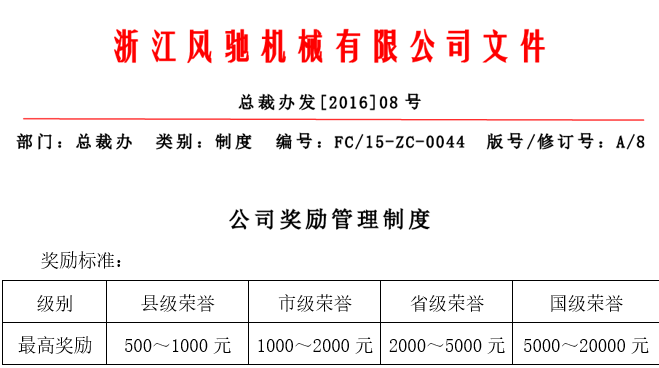我司為了相應政府號召,鼓勵符合要求的員工代表企業參加各項比賽和評選活動,特完善了獎勵政策,對于員工代表企業在各類比賽或評選中獲得名次及成功入選,為公司贏得榮譽,一經核實公司將給予特別榮譽獎,并額外給予積分獎勵。